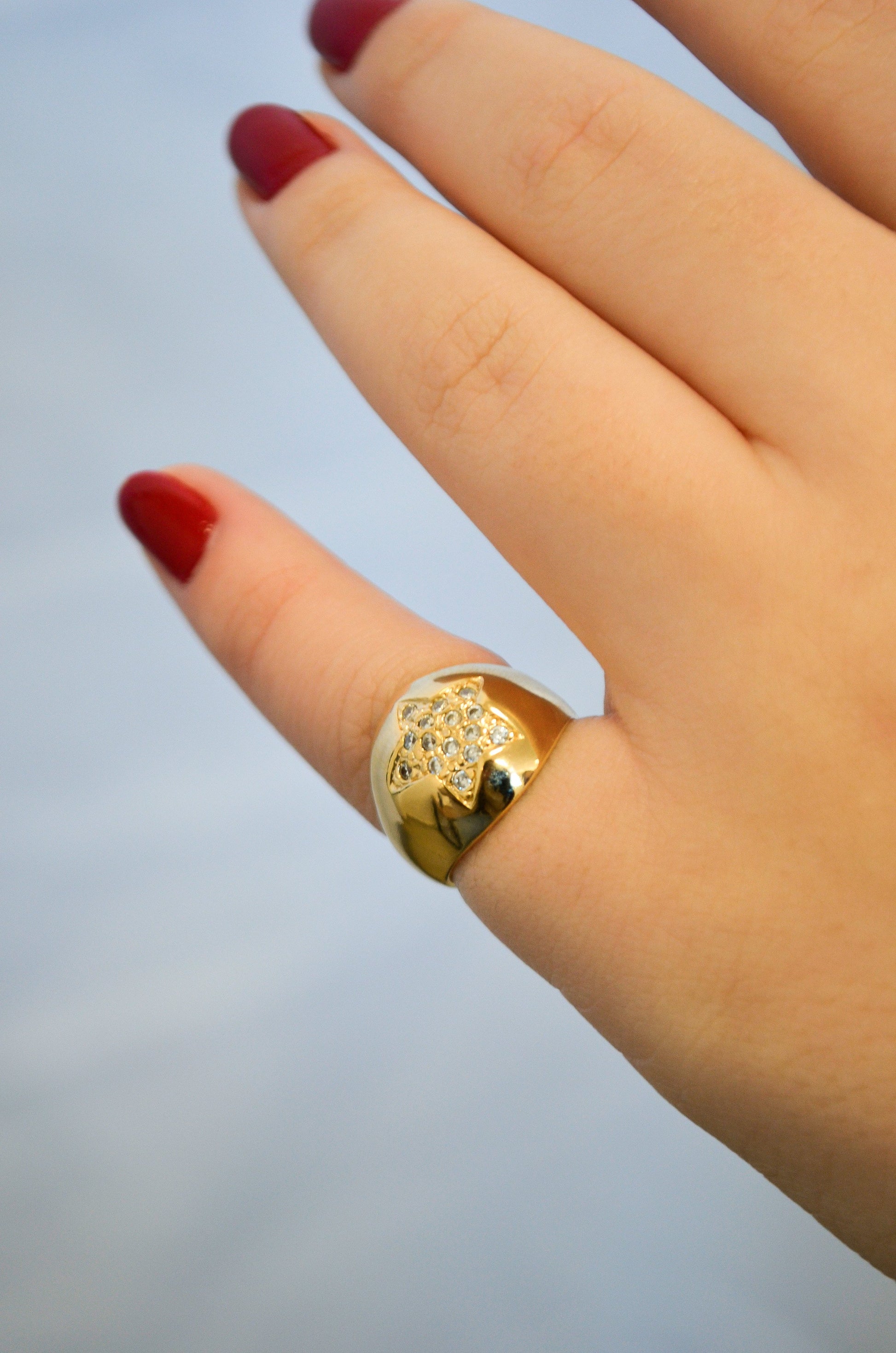 Anel de dedinho com estrela de zircônias banhado a ouro 18k