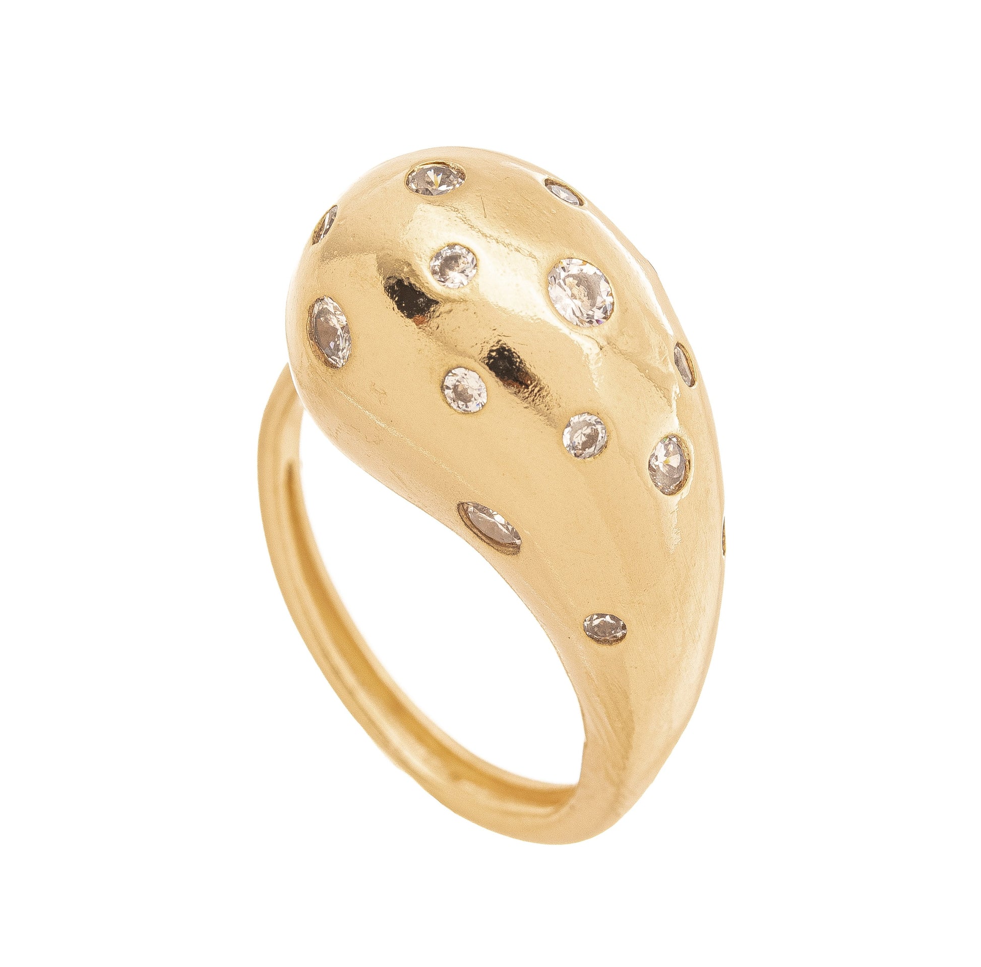 Anel regulável gota com zircônias banhado a ouro 18k