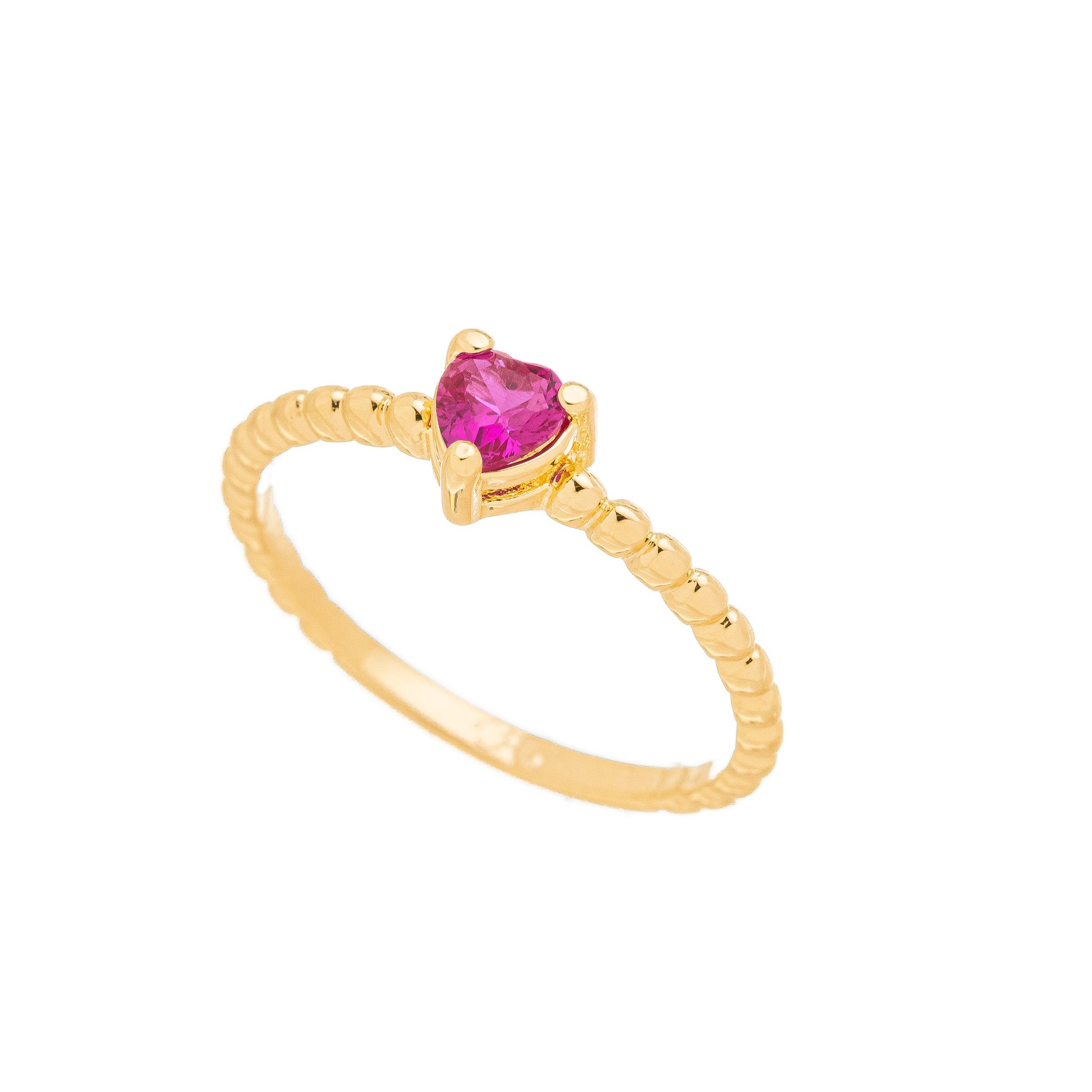 O anel possui uma pedra central em formato de coração, cravejada com zircônias cúbicas, que proporcionam um brilho semelhante ao do diamante. Essa pedra é cuidadosamente lapidada, o que garante a sua perfeição e realça ainda mais a sua beleza.