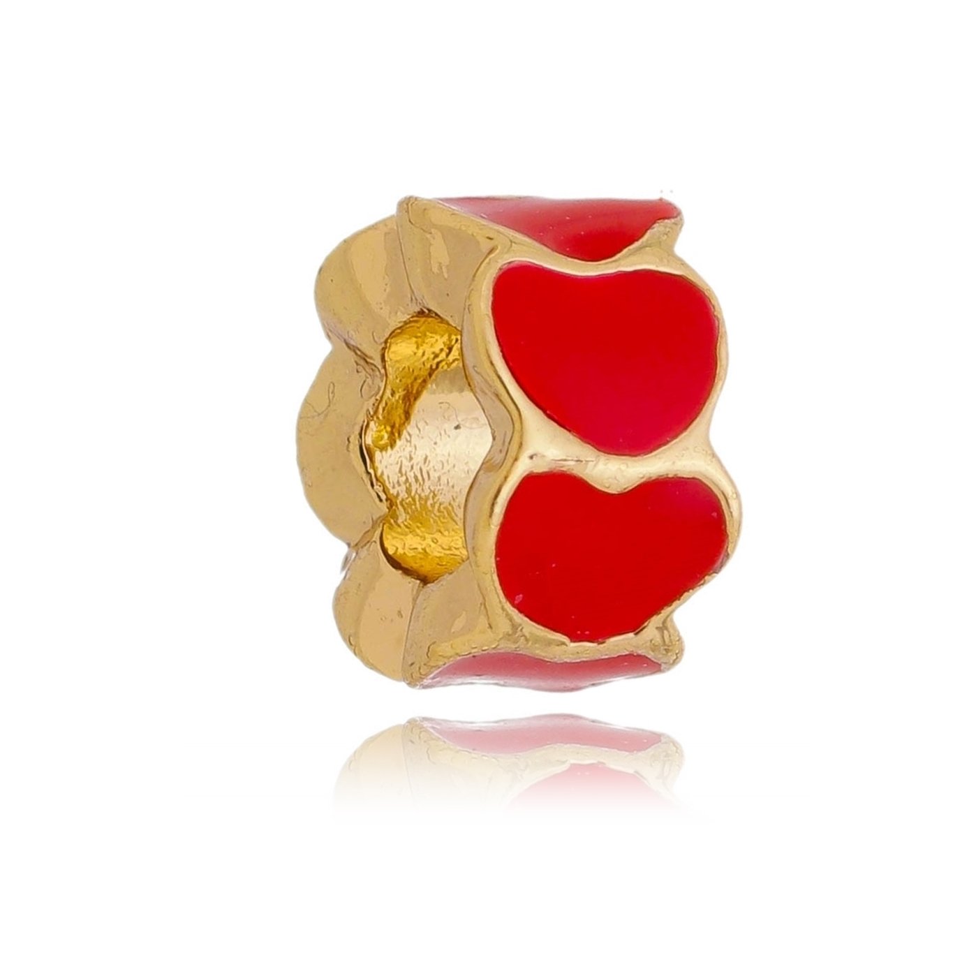 Berloque de corações com resina vermelha banhado a ouro 18k