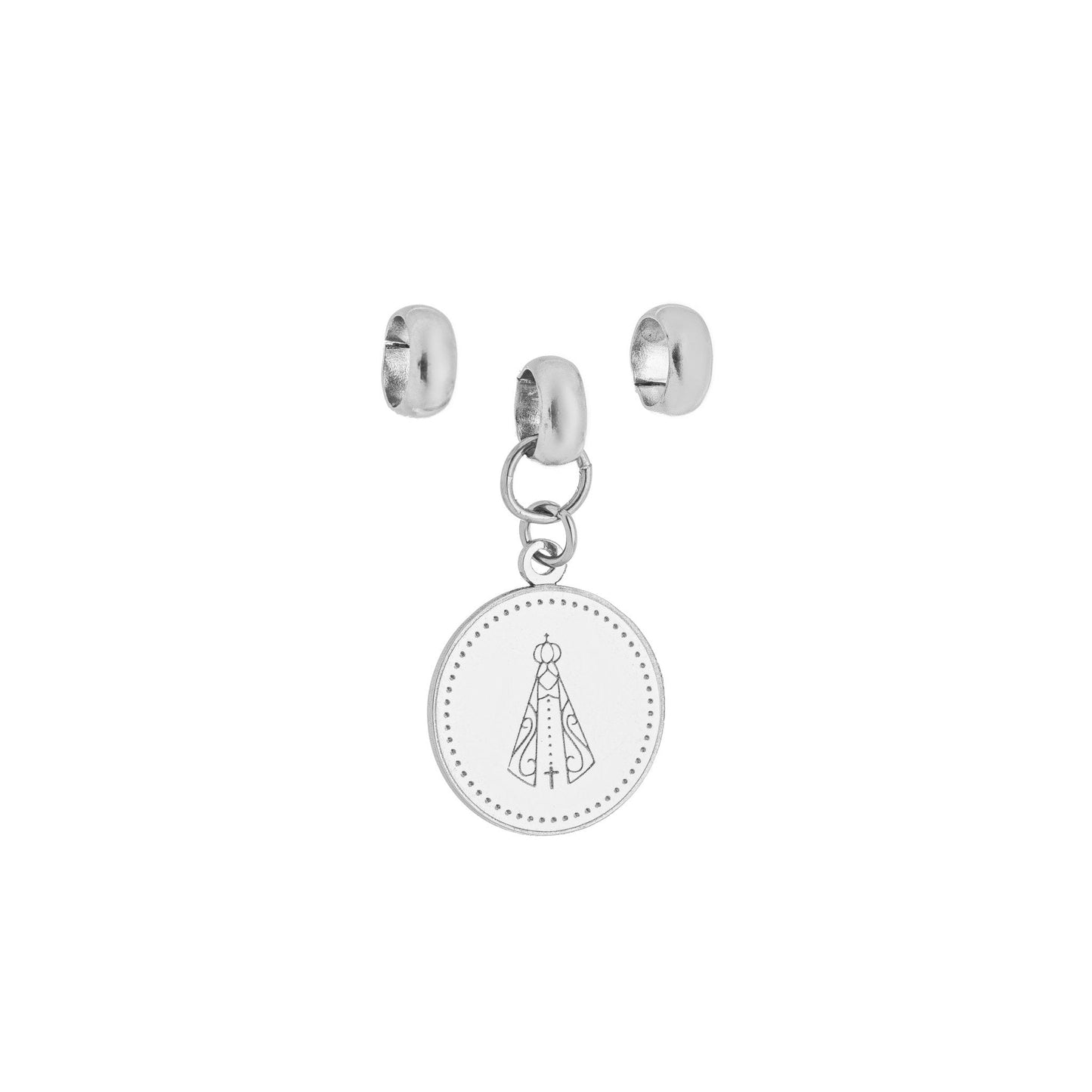 Berloque de Nossa Senhora de Aparecida com dois separadores em aço inox