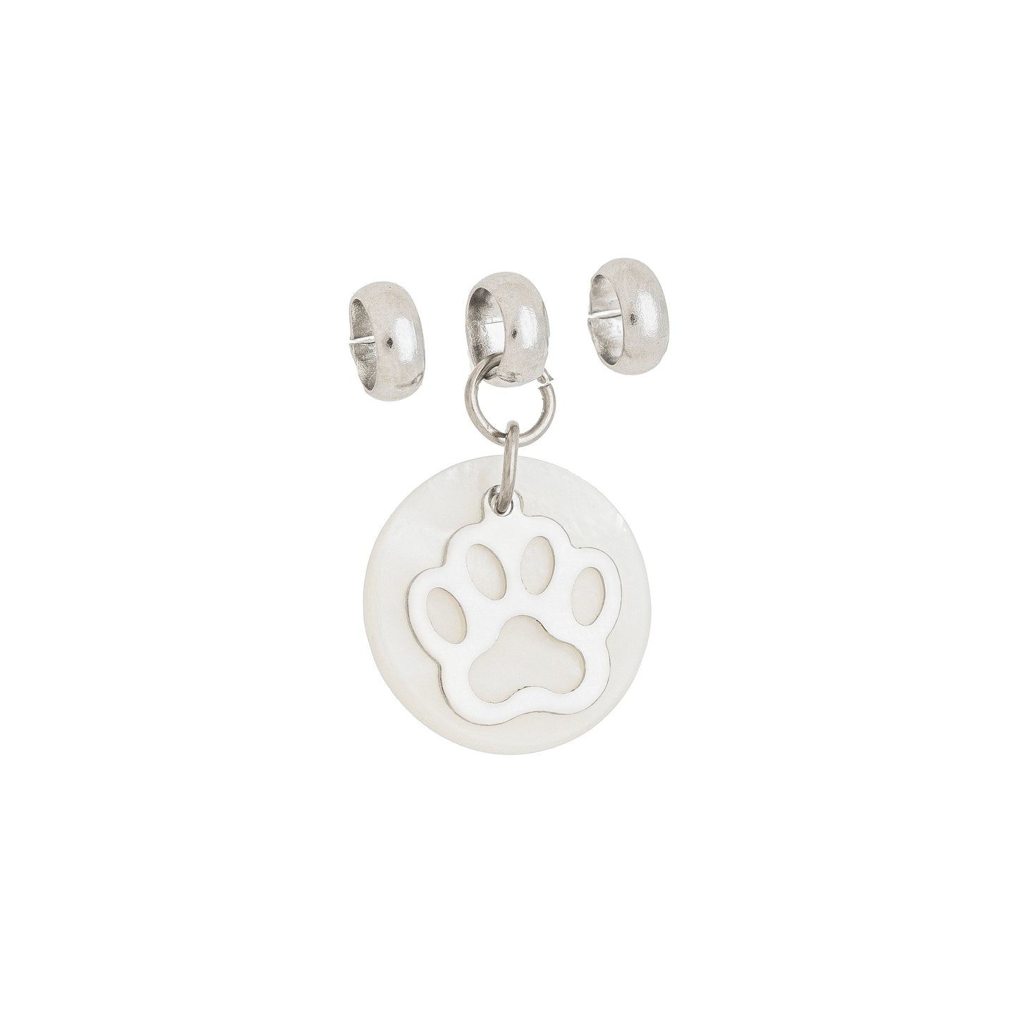 Berloque de pata com madre pérola com dois separadores em aço inox