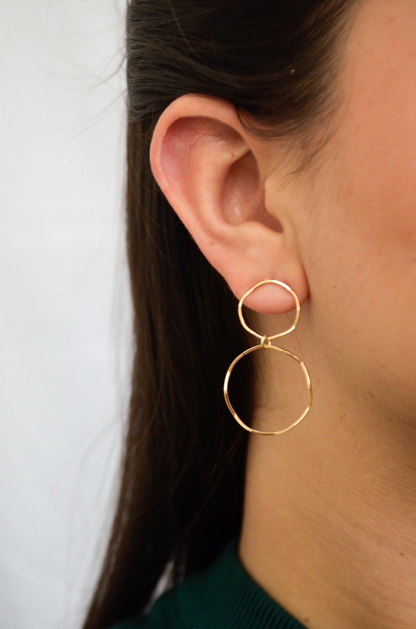 O brinco com dois círculos de fio ondulado banhado a ouro 18k é a escolha perfeita para quem busca um acessório elegante e sofisticado. Com um design moderno e minimalista, esse brinco é ideal para compor diversos looks, desde os mais casuais até os mais formais.