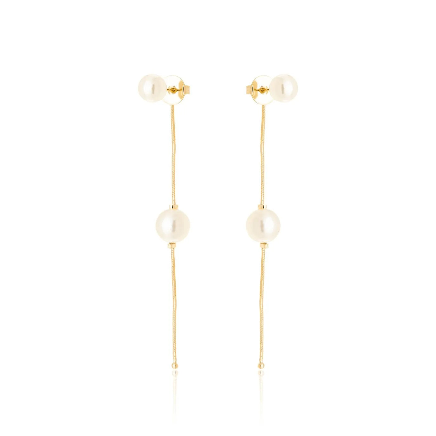 Brinco corrente com pérola banhado a ouro 18k - Luxo e elegância em um só acessório