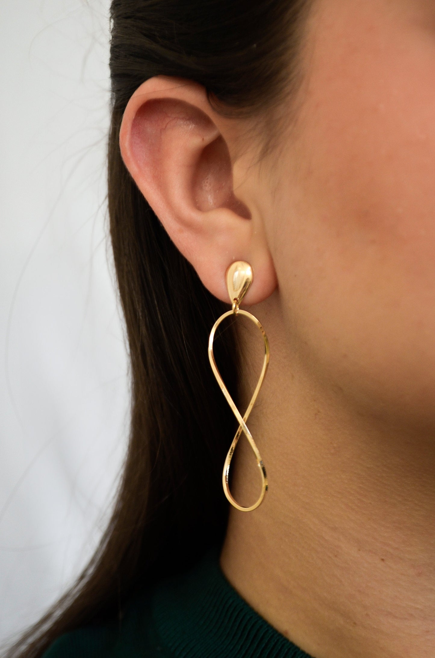Brinco de fio em formato de infinito banhado a ouro 18k