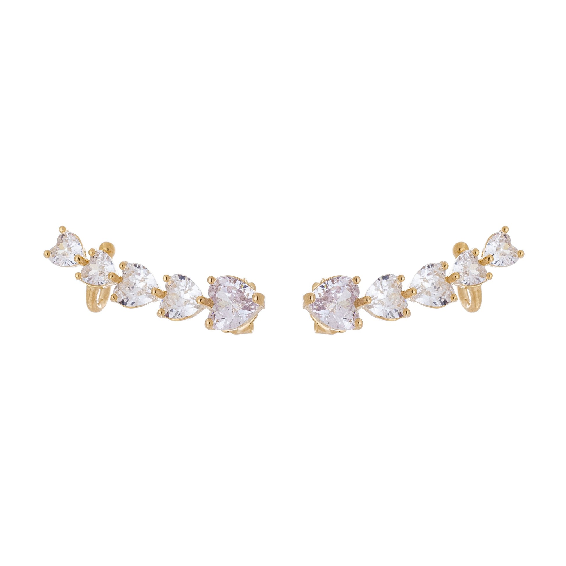 Brinco Earcuff Corações de Zircônia Banhado a Ouro 18k