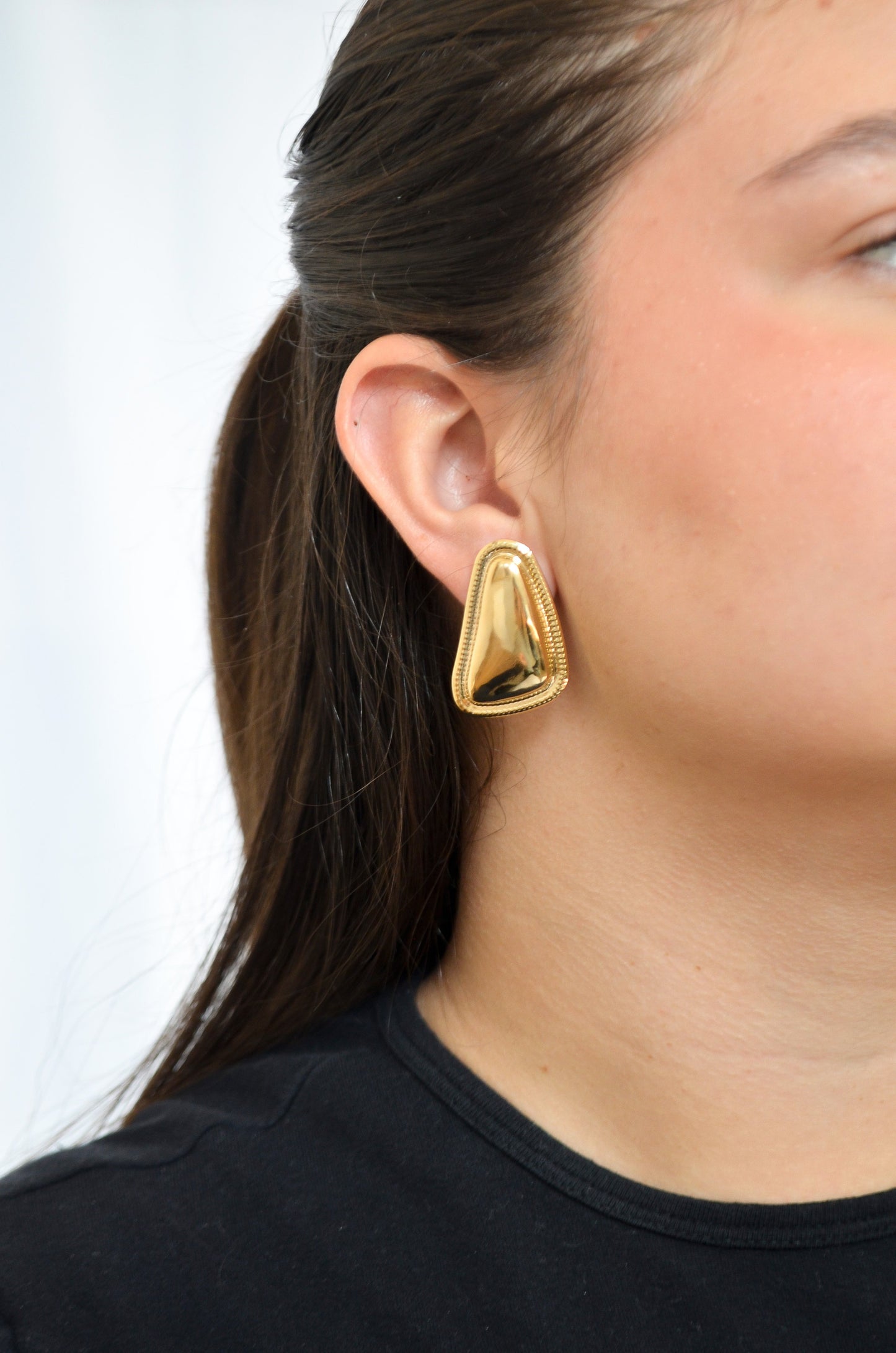 O design do brinco é moderno e sofisticado, perfeito para complementar qualquer look, seja para o dia a dia ou para ocasiões especiais. Seu formato orgânico traz um toque único e exclusivo, tornando-o uma peça de destaque em qualquer produção.