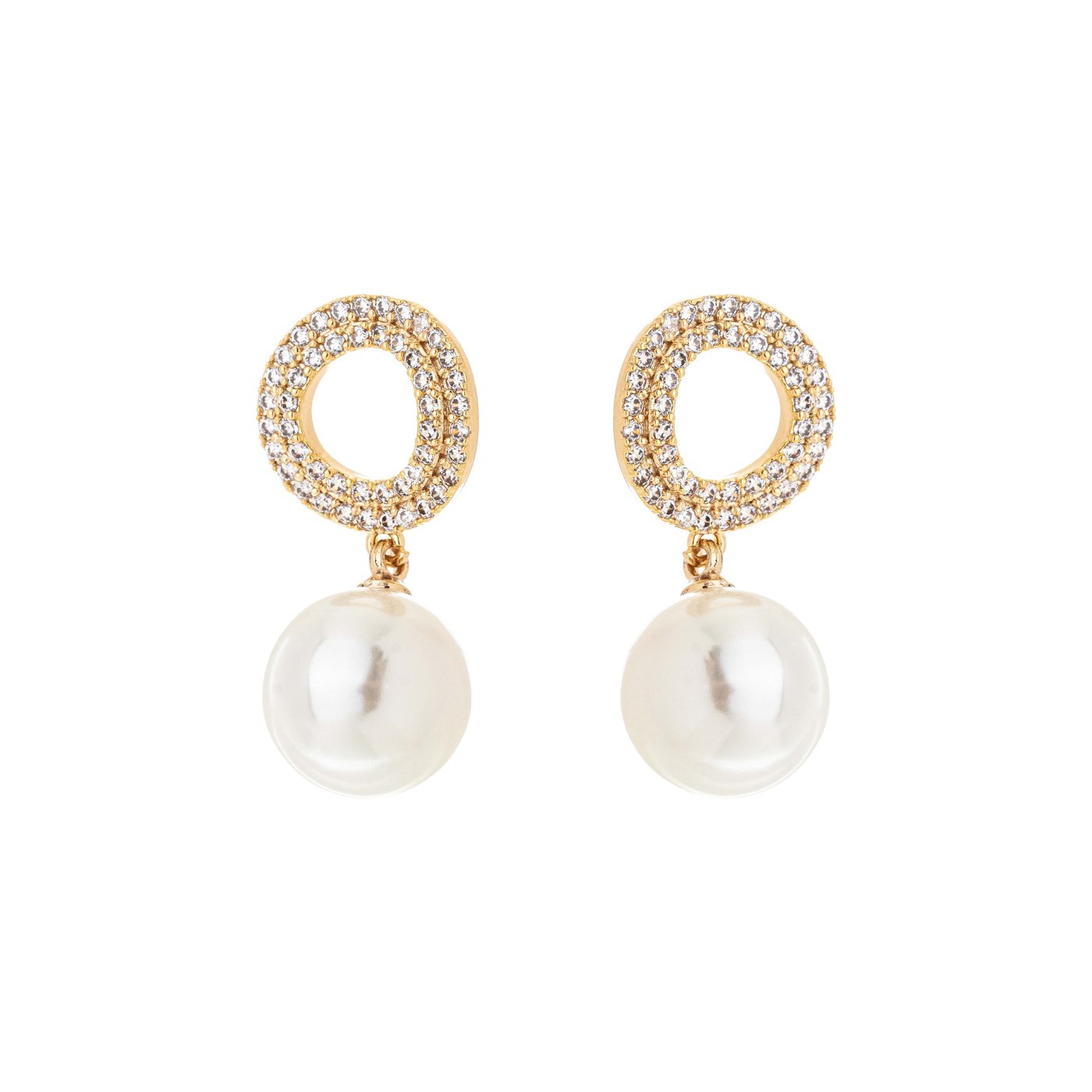 Brinco Pérola e Zircônias Banhado a Ouro 18k