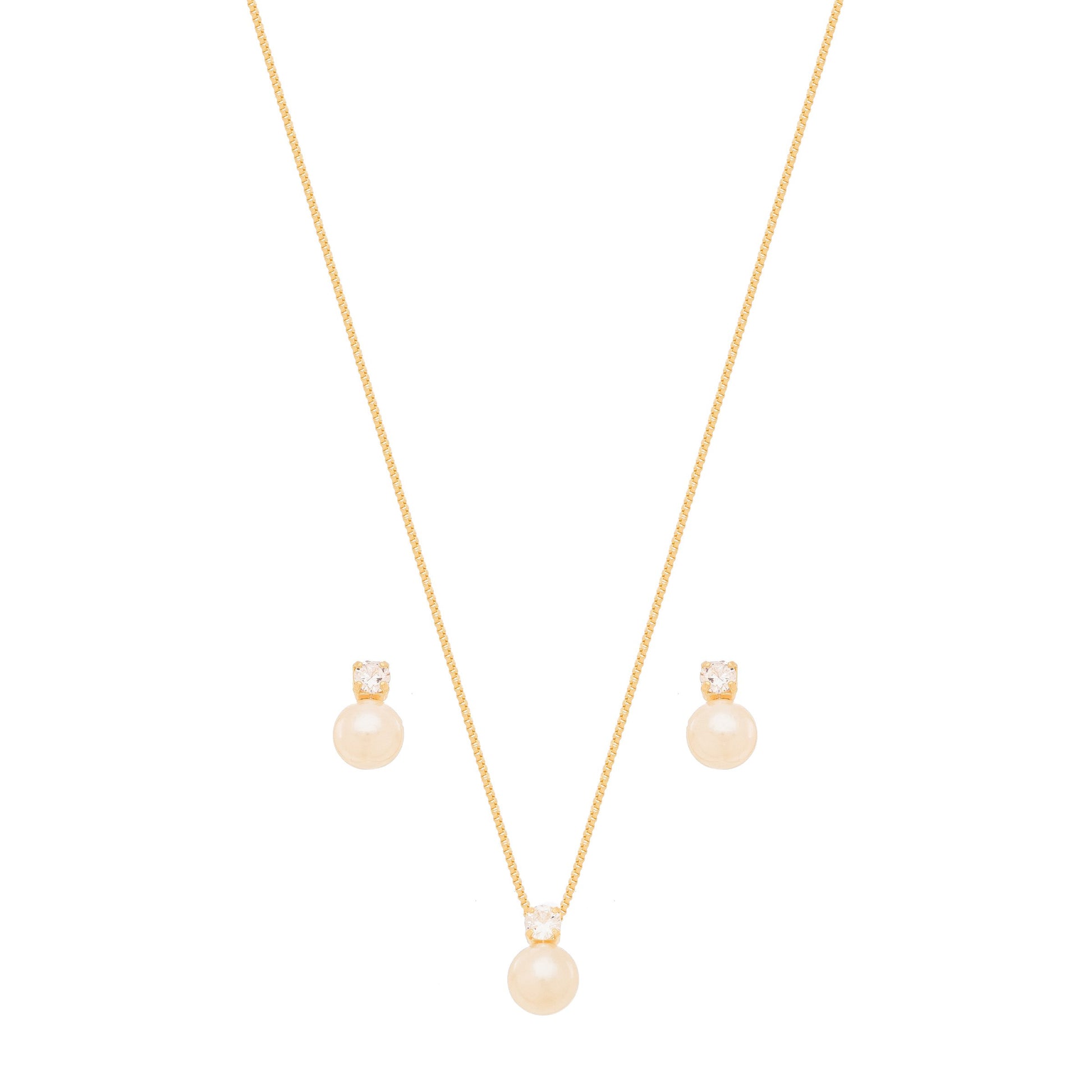 Conjunto de pérola com zircônia banhado a ouro 18k