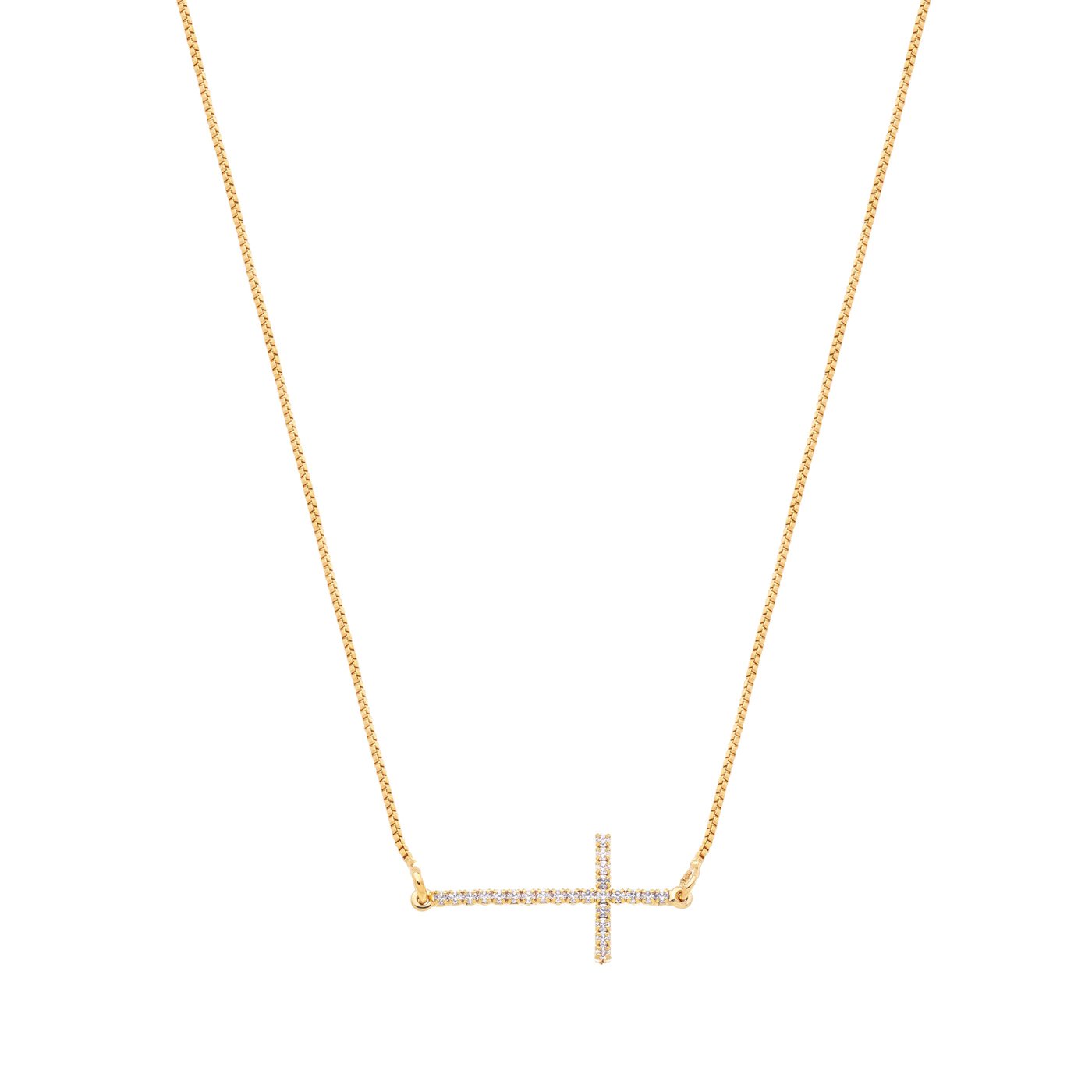 Gargantilha cruz com zircônias banhada a ouro 18k