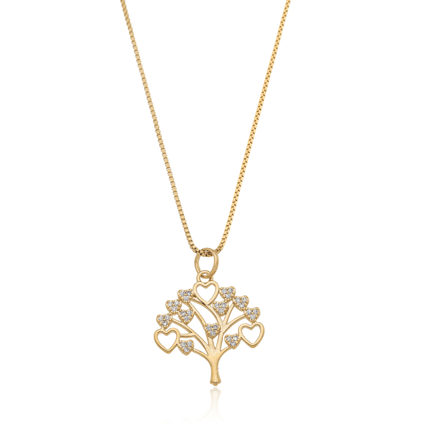 Gargantilha de Árvore da Vida com Coração e Zircônias Banhada a Ouro 18k