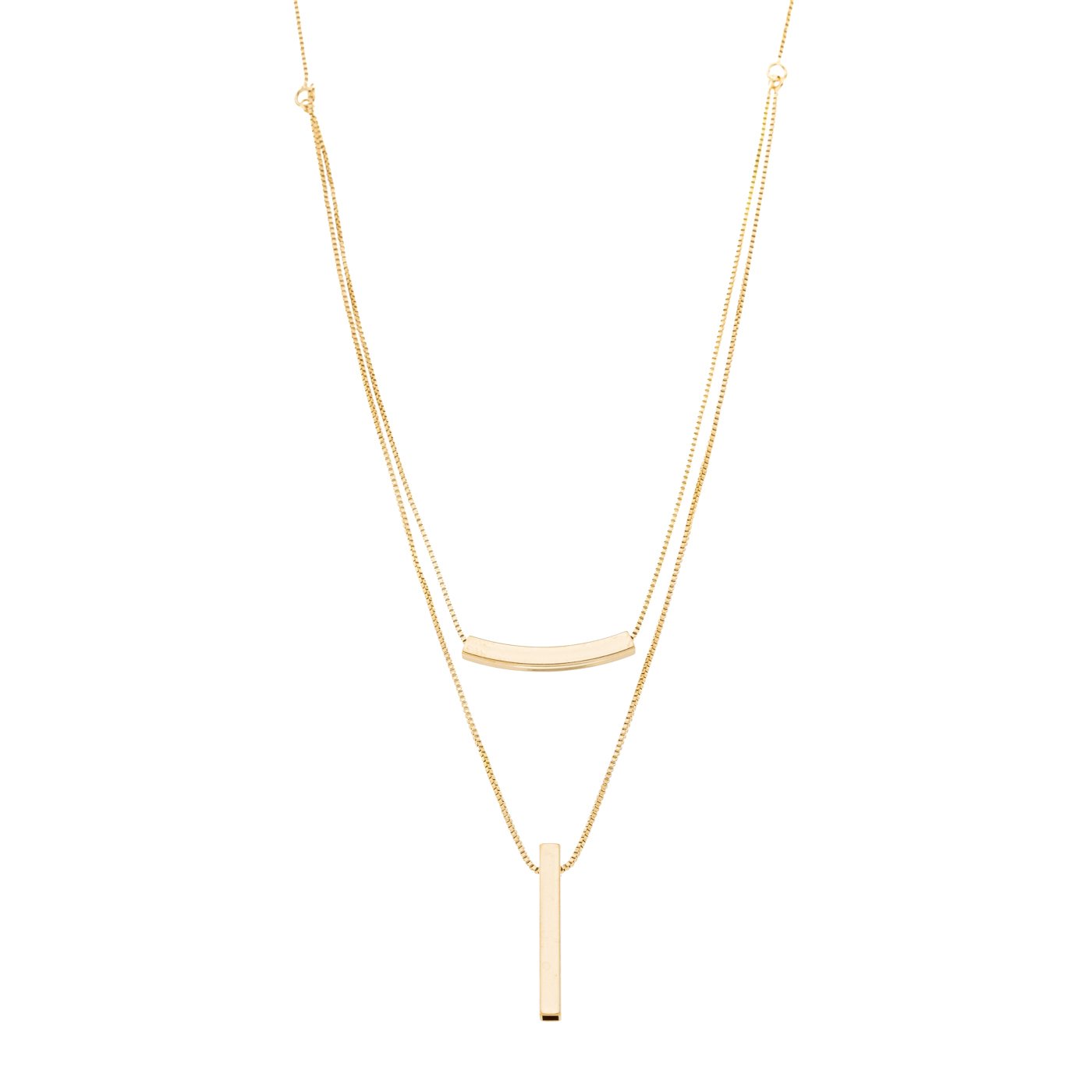 A Gargantilha Dupla com Canutilhos Banhada a Ouro 18k é o acessório perfeito para quem busca elegância e sofisticação. Com um design moderno e delicado, essa peça irá complementar qualquer look, seja para o dia a dia ou para ocasiões especiais.