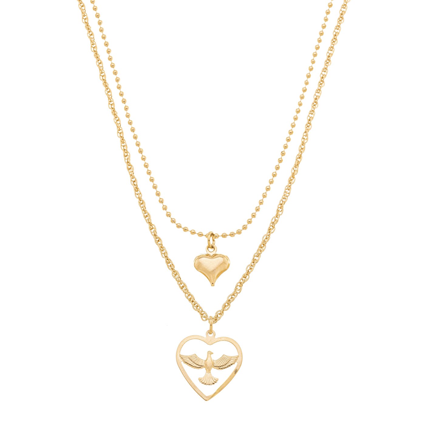 Gargantilha dupla com coração e espírito santo banhada a ouro 18k