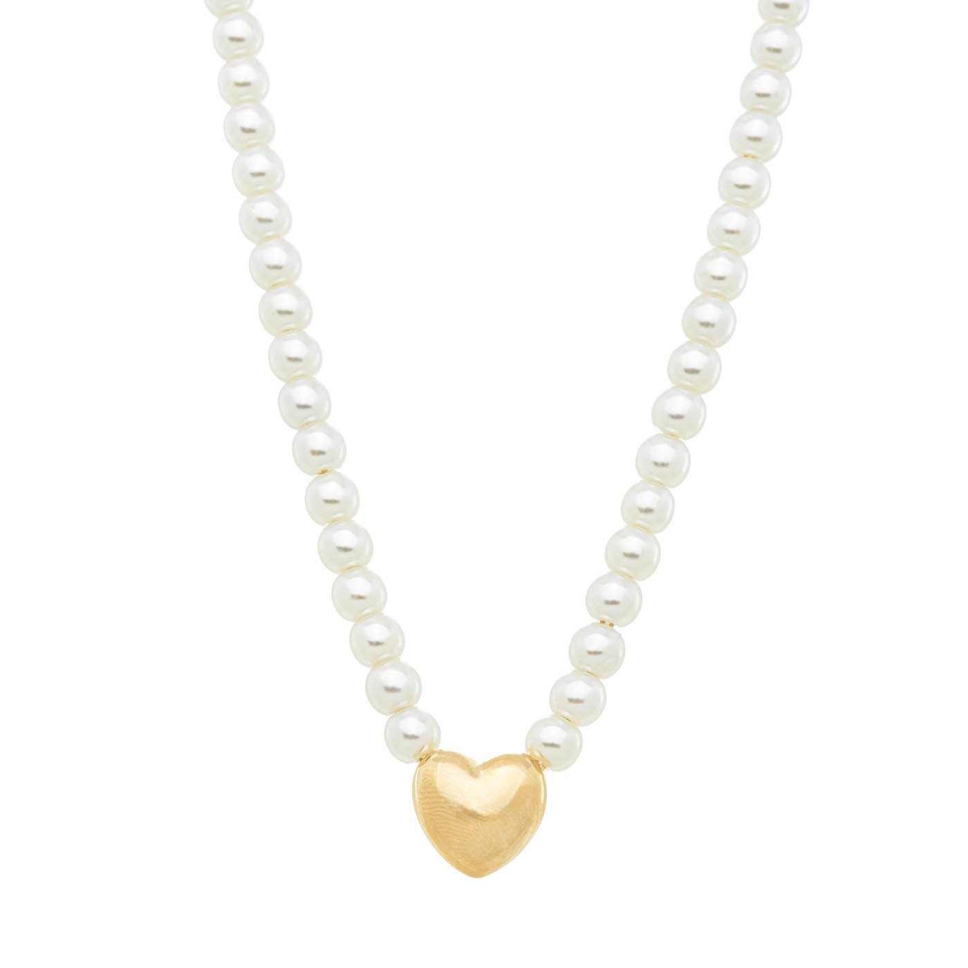 Gargantilha Pérolas com Coração Banhada a Ouro 18k
