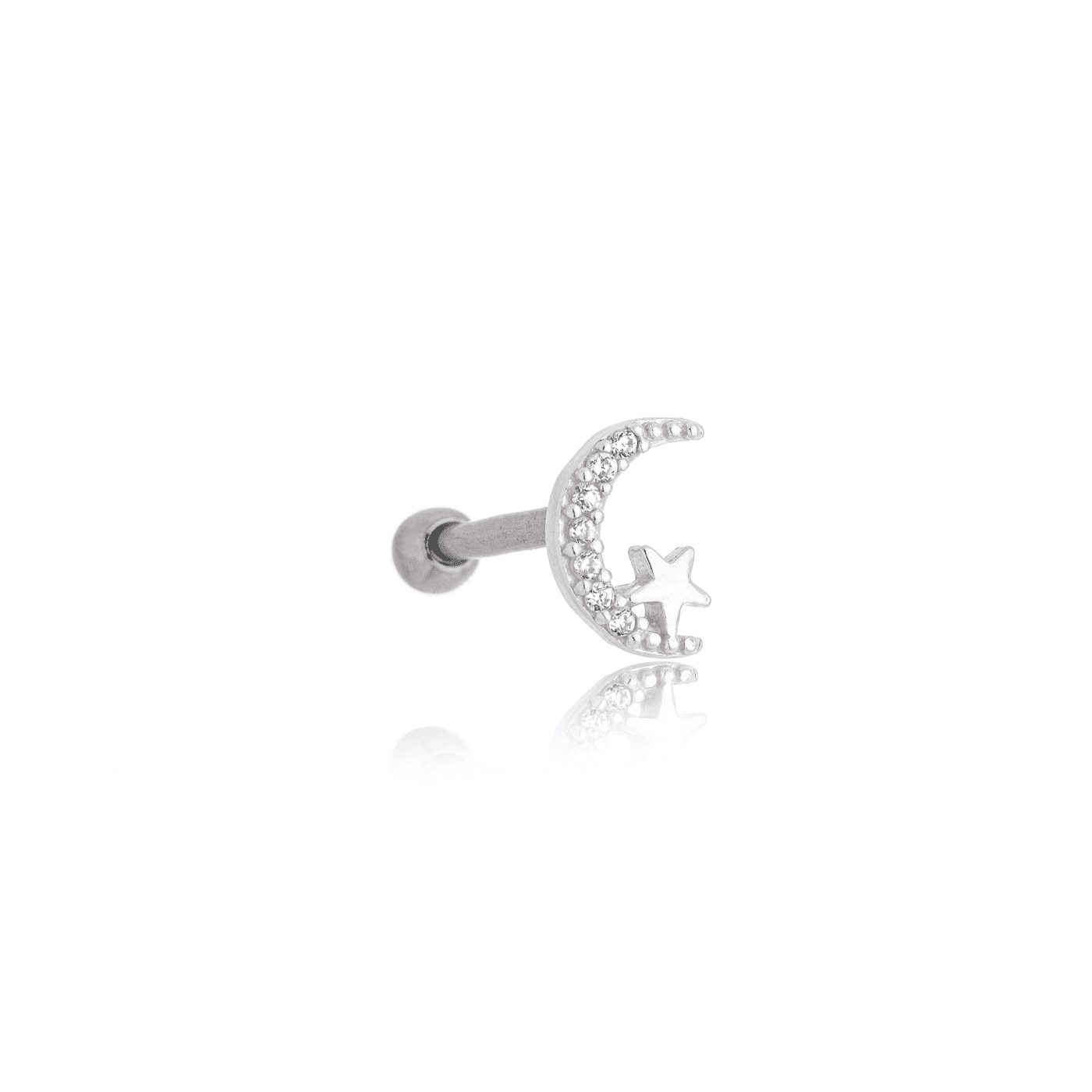 Piercing Lua e Estrela em Prata 925 com Zircônias: Acessório de Estilo e Personalidade