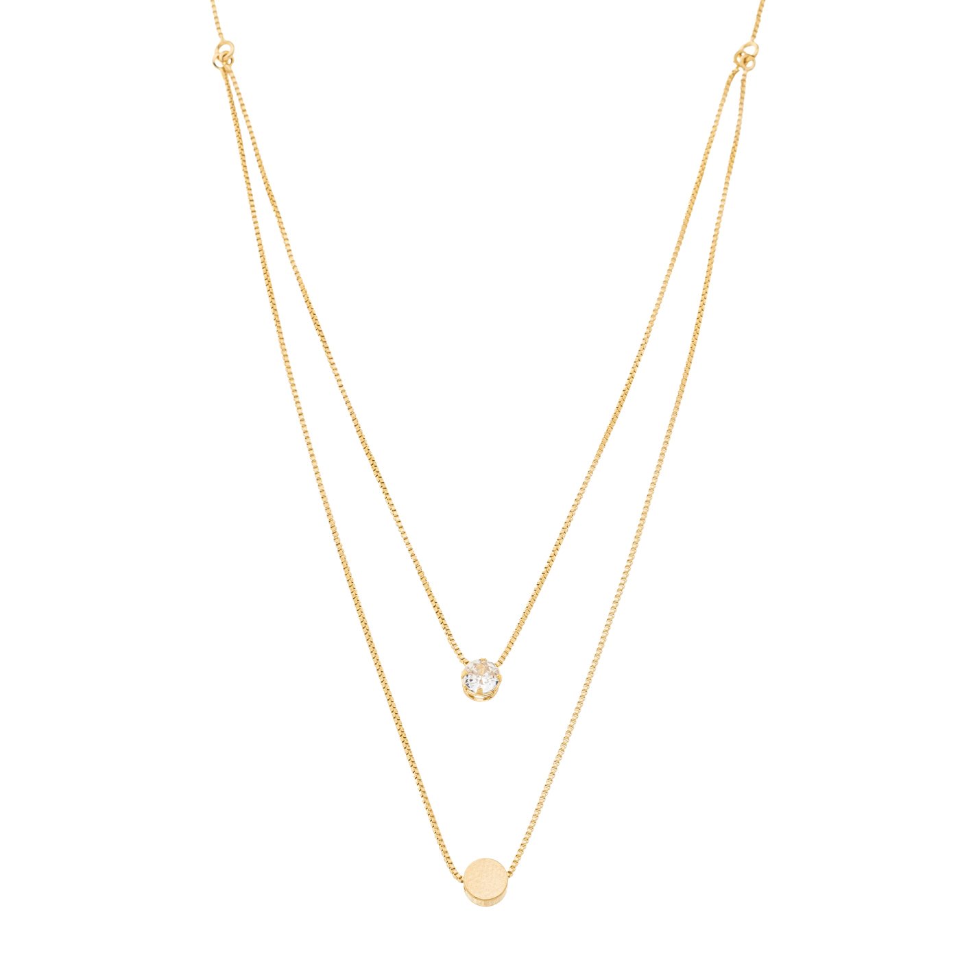 Gargantilha Dupla com Ponto de Luz e Círculo Banhado a Ouro 18k