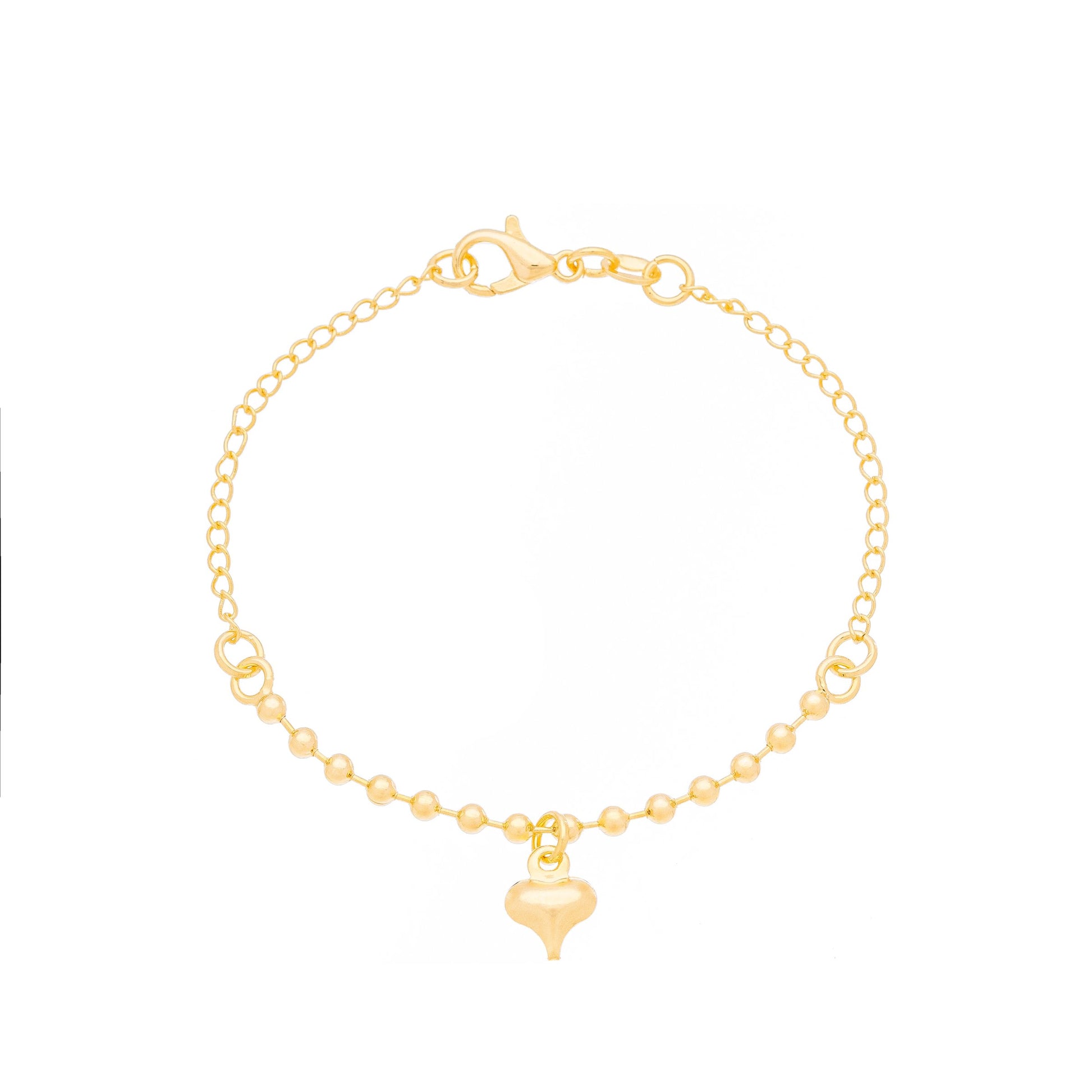 Pulseira infantil bolinhas e coração banhada a ouro 18k