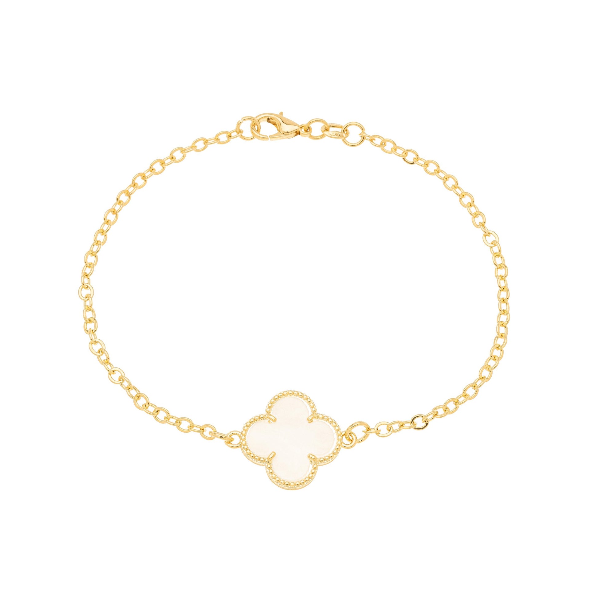 Pulseira trevo em madre pérola banhada a ouro 18k