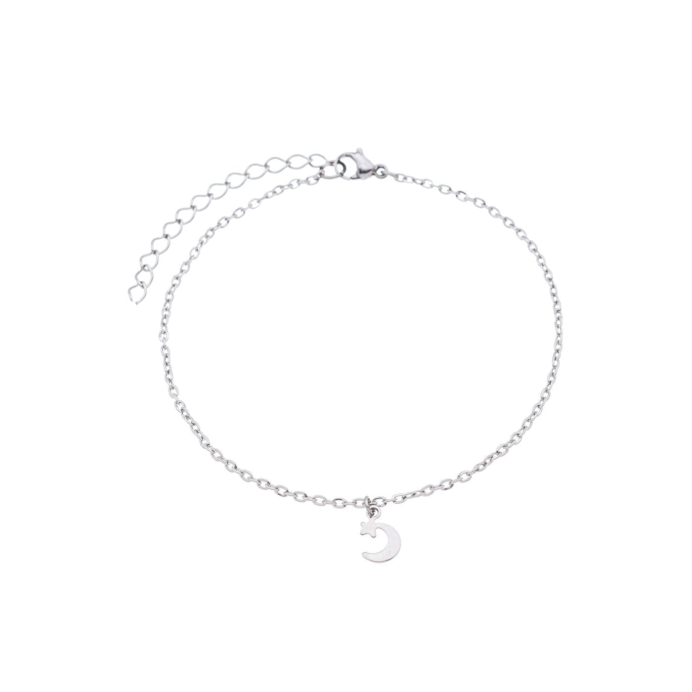Tornozeleira com lua e estrela em aço inox - Adicione um toque místico ao seu visual!