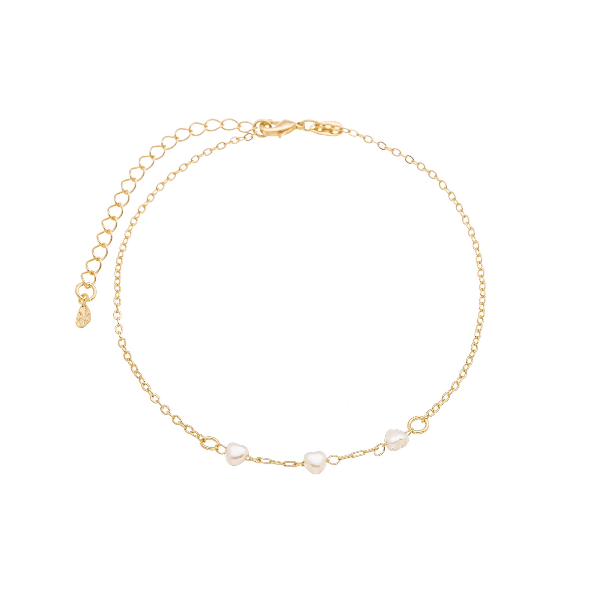Tornozeleira Corações de Pérola Banhada a Ouro 18k